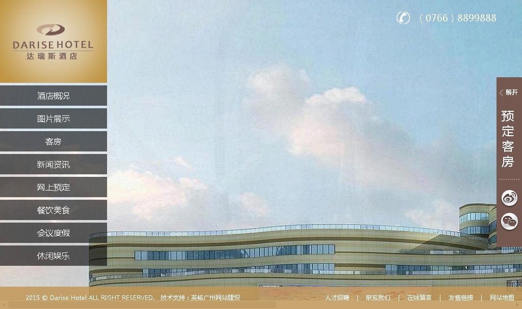 达瑞斯酒店地处“中国石材之乡”广东省云浮市,毗邻省级名胜风景区——蟠龙洞,座 落于城市主要商业和购物中心——东方时代广场东侧,天湖广场近在咫尺。酒店主体居于东 楼六至九层,按国际五星级标准设计,装修豪华高雅,配套客房、西餐、大堂吧、商务中心、 多功能会议厅、露天游泳池等服务设施,楼下即是云浮目前最大的商场,娱乐购物方便快捷。 酒店距离广州白云机场150公里,距云浮汽车站300米,广云高速云浮东出口约10分钟车程, 云浮东高铁站20分钟车程,无论是商务或者旅游,达瑞斯酒店都会是您理想的居停之所。 案例网址:未知 上一篇:广州市白云行知职业技术学校 下一篇:广州尚匠生物科技有限公司 RECENT ARTICLES 近期文章 香港本沐祺化妆品有限公司 2017年01月14日 深圳市锦峰物业经营管理有限公司 2016年12月26日 广州瑞港医疗美容 2016年11月03日 广州尚匠生物科技有限公司 2016年08月03日 云浮市达瑞斯酒店管理有限公司 2015年05月27日 广州市白云行知职业技术学校 2015年05月07日